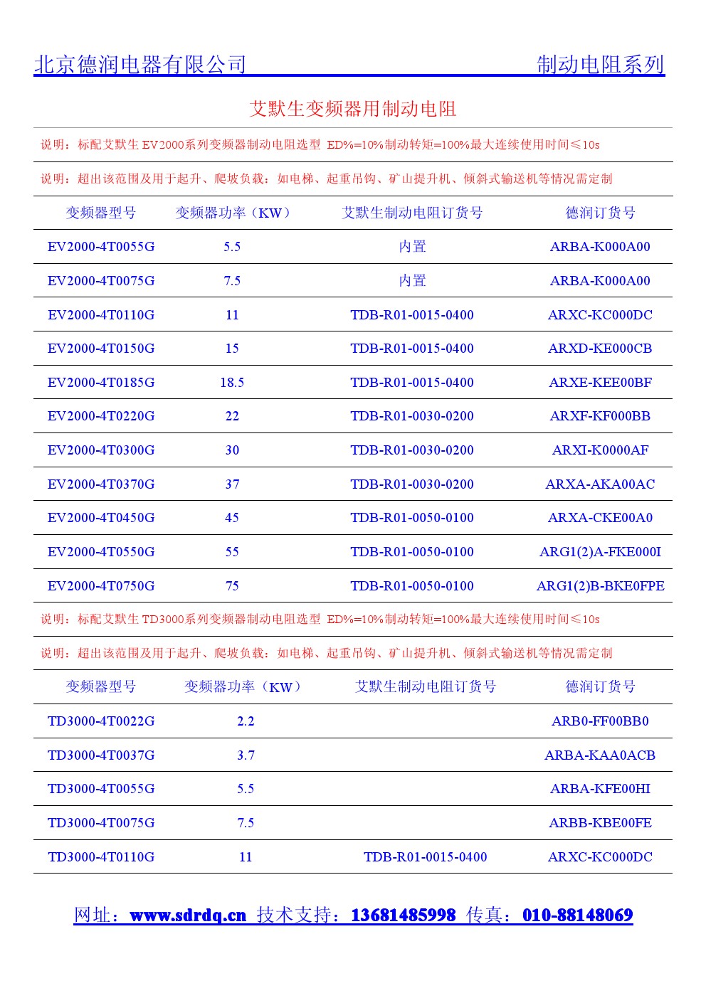 - 產(chǎn)品類別: 艾默生變頻器用制動(dòng)電阻