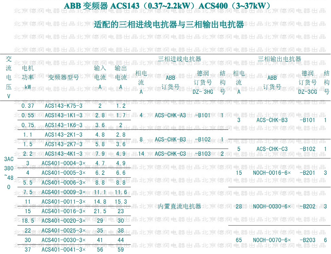 適配ABB變頻器用進(jìn)線(輸出)電抗器